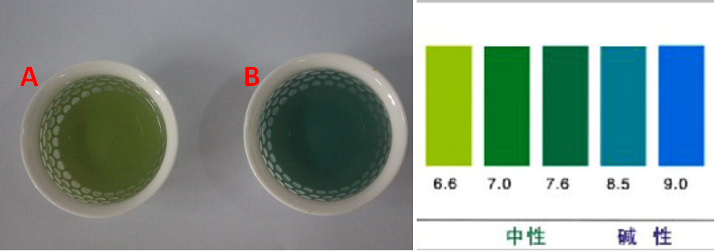 | A - mineral water | B - mineral water after 3 minutes electrolysis | |